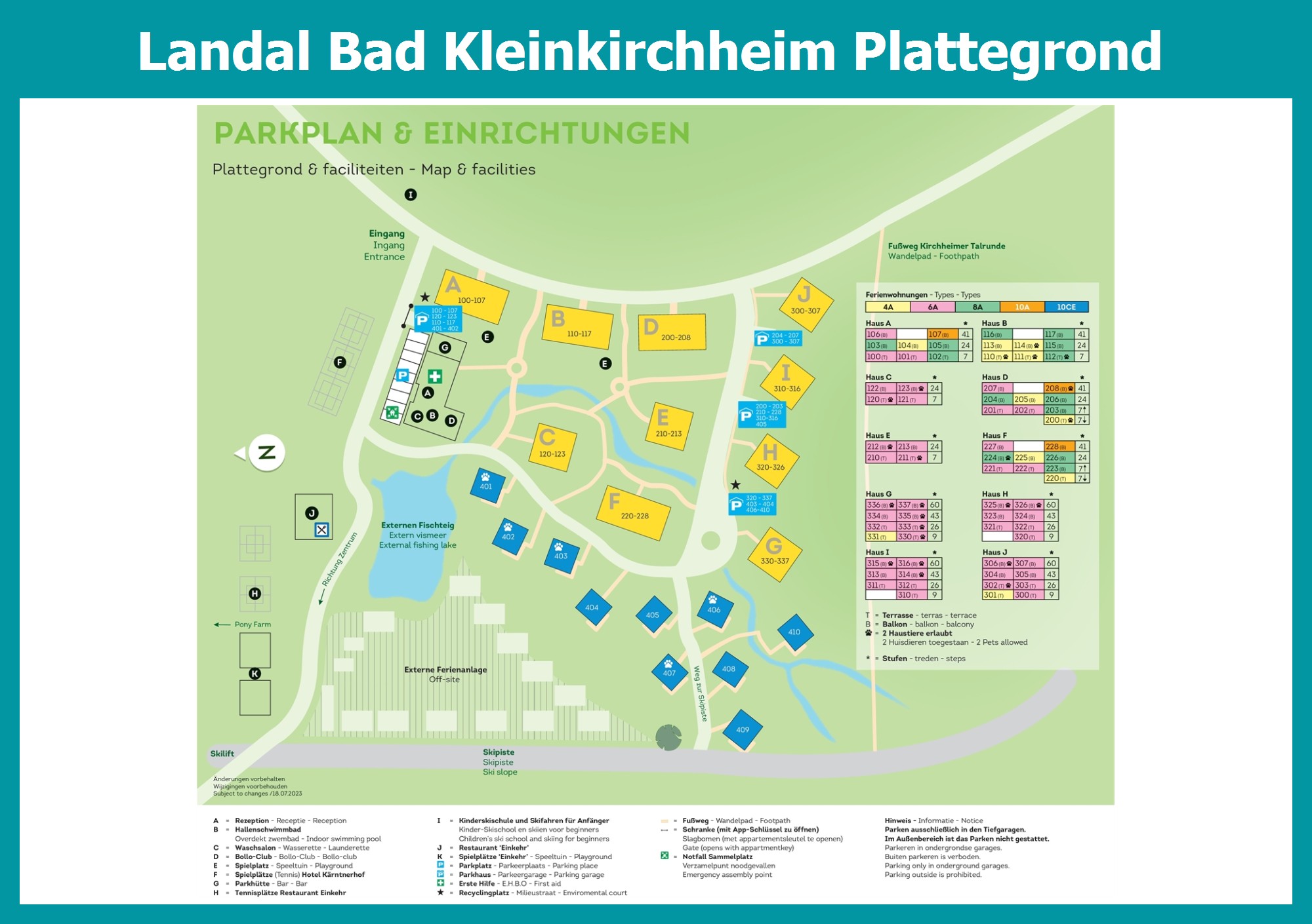 Actuele en overzichtelijke park plattegrond van Landal Bad Kleinkirchheim met alle huisjes en faciliteiten, ook te downloaden als PDF.