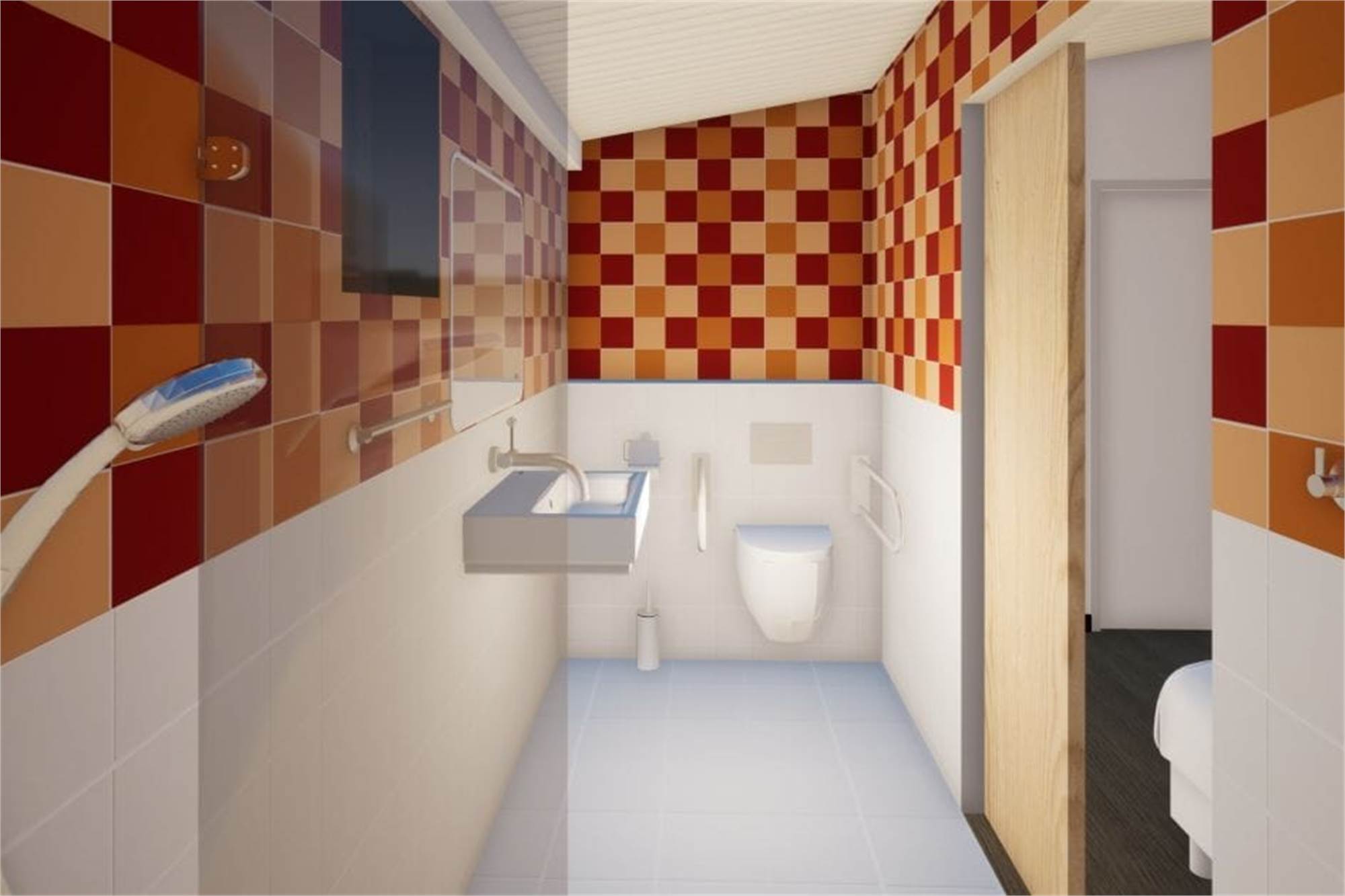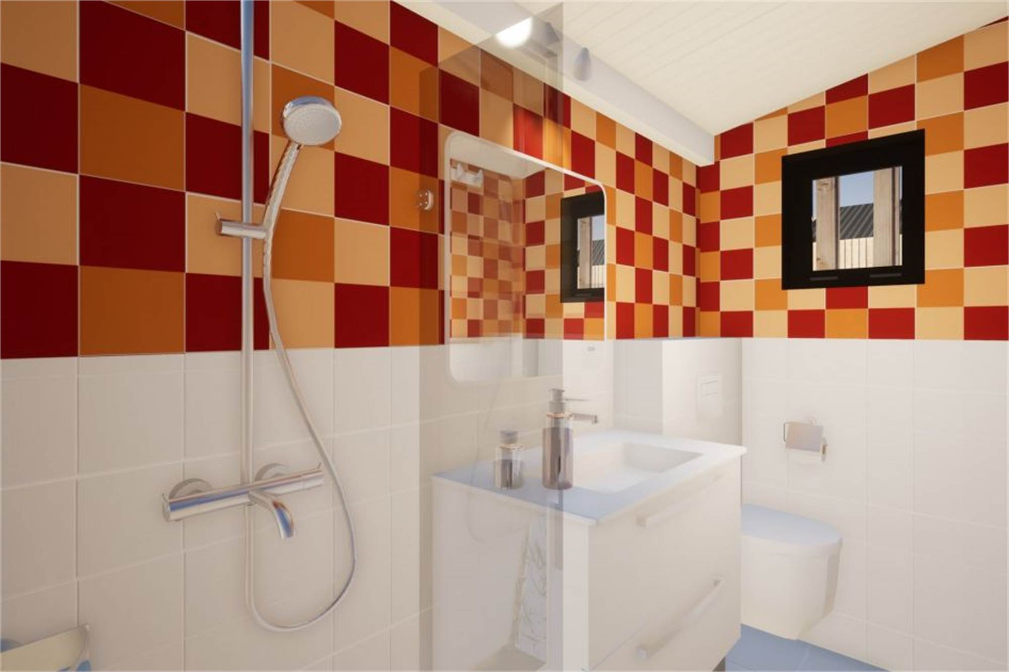 Deze vrijstaande lodge is geschikt voor 4 personen. In de woonkamer is een zithoek, eethoek en smart-tv. De keuken heeft een vaatwasser, koelkast met vriesvak, magnetron, koffiemachine en waterkoker. Er zijn 2 slaapkamers met elk 2 eenpersoonsbedden. Beide slaapkamers hebben een badkamer met douche en toilet. Eén van de slaapkamers is aangepast en heeft in hoogte verstelbare bedden. Die slaapkamer heeft ook een extra brede deuropening naar de badkamer met inklapbare douchestoel en het toilet inklapbare beugels. De lodge heeft een tuin met veranda en een loungeset. De hele lodge heeft vloerverwarming en gratis wifi.
