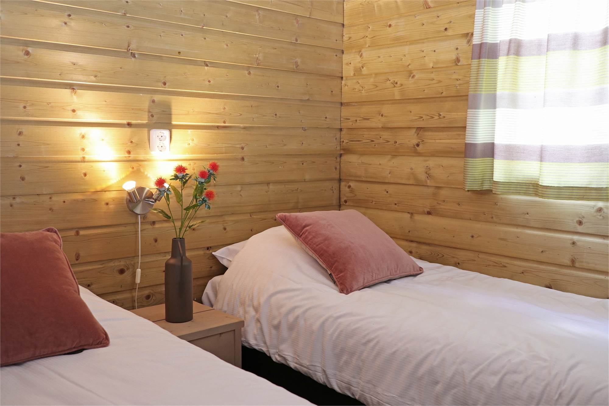 - Slaapkamer met twee 1-persoons boxspring bedden