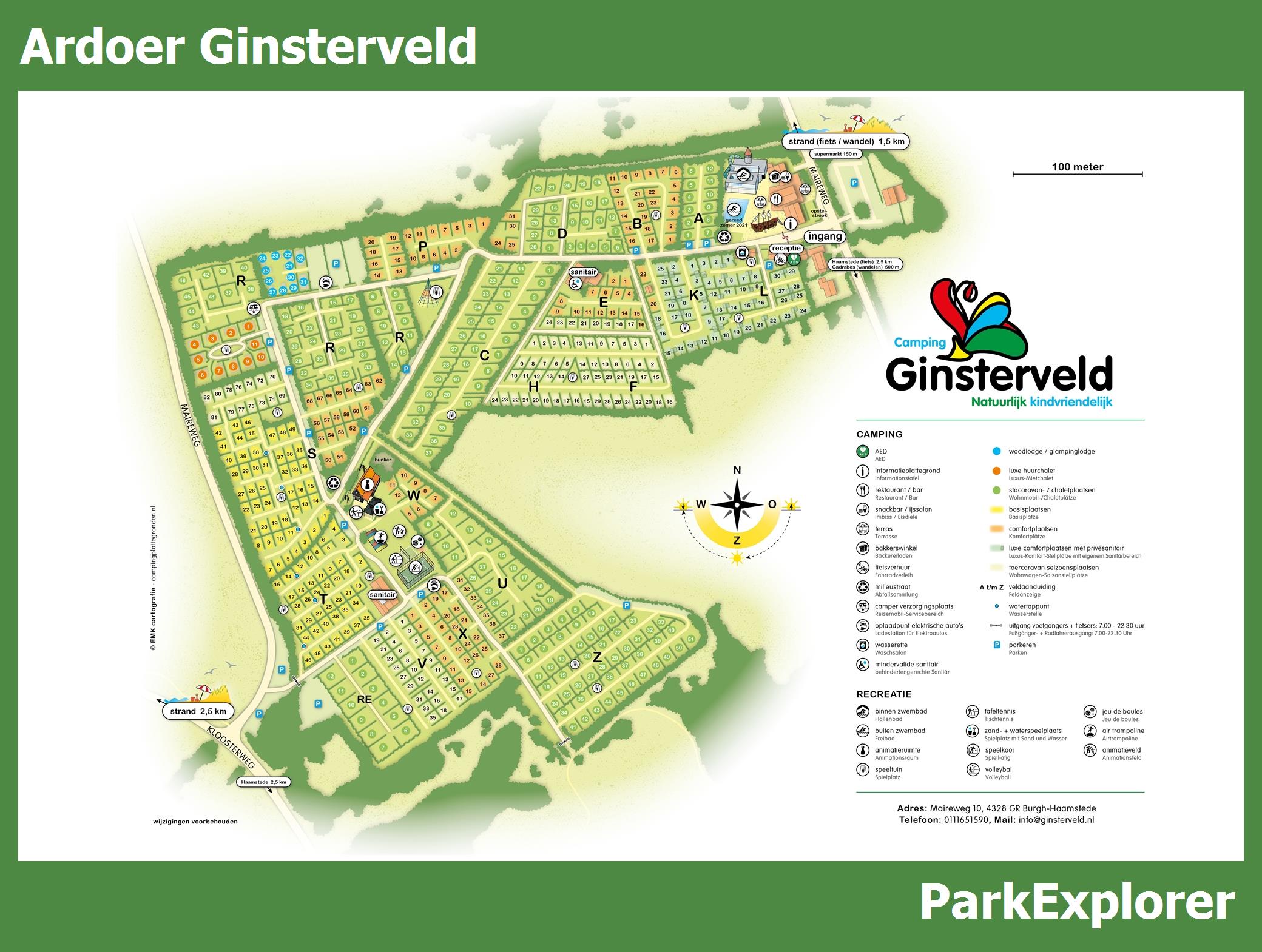 De park plattegrond van Ardoer Ginsterveld is niet alleen zeer handig tijdens het verblijf, maar vooral ook tijdens het boeken. De plattegrond geeft een goed beeld van de aanwezige faciliteiten en de ligging ervan op het park. TIP: Boek met voorkeursligging en kies een huisje in de buurt van de belangrijkste faciliteiten.