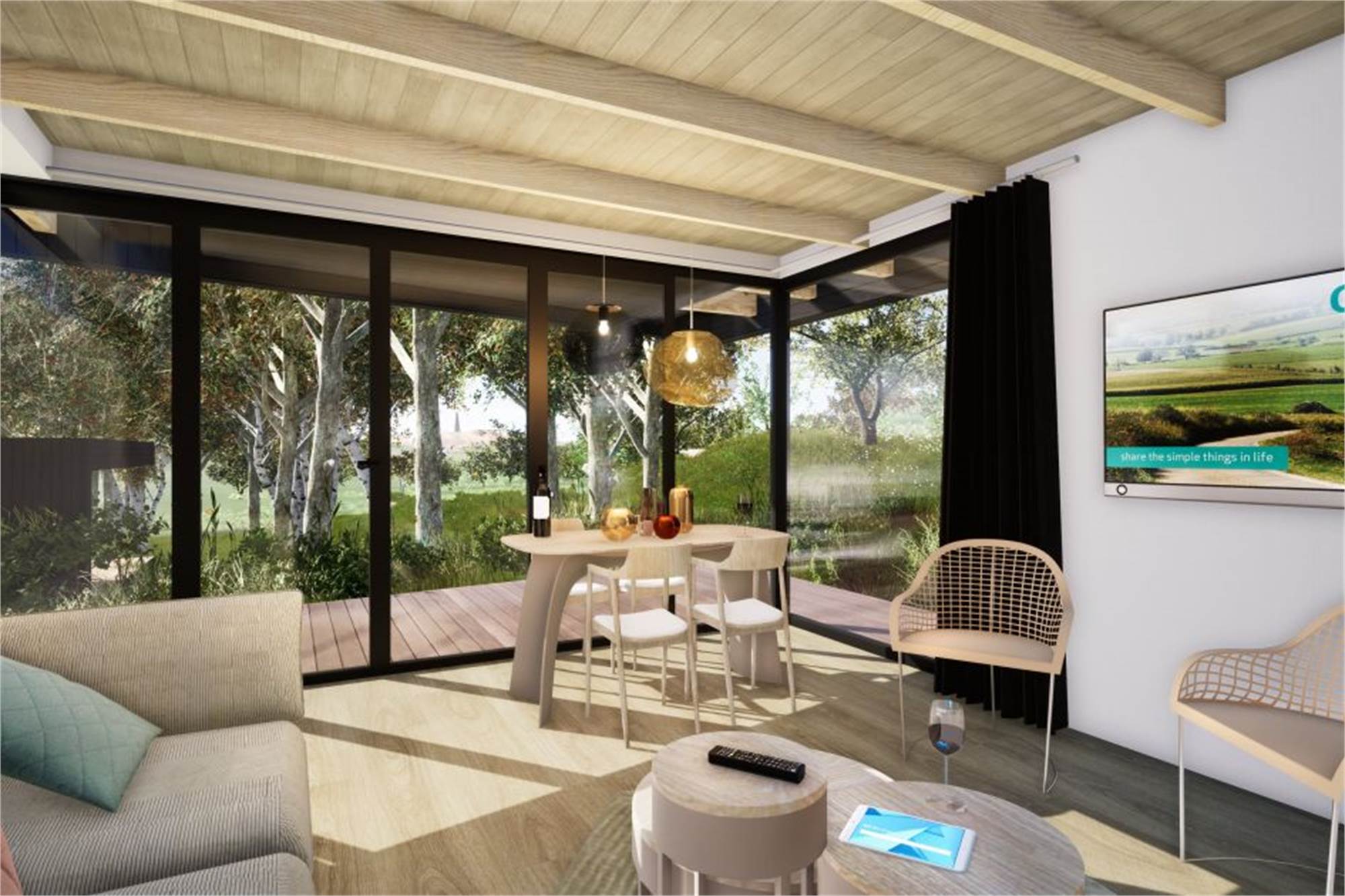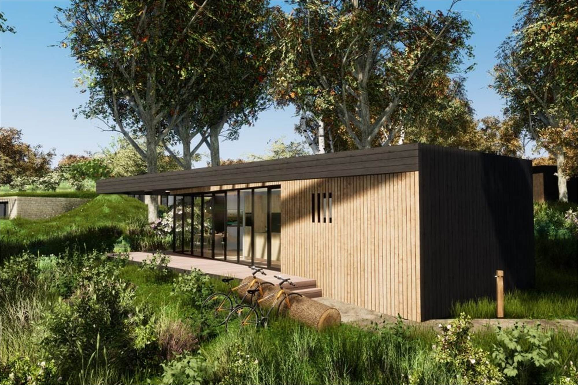Deze vrijstaande, gelijkvloerse lodge is geschikt voor 4 volwassenen en 1 baby. De woonkamer heeft een zithoek, eethoek, televisie en vloerverwarming. De open keuken heeft een vaatwasser, koffiecupapparaat, waterkoker, combimagnetron, en koelvriescombinatie. Er zijn 2 slaapkamers met elk 2 eenpersoonsbedden. De bedden zijn extra lang, namelijk 210cm. De badkamer heeft een inloopregendouche en vloerverwarming. Er is een apart toilet. De lodge heeft een tuin met een deels overdekt terras met tuinmeubilair. Er kan worden geparkeerd op de centrale parkeerplaats. Er is gratis wifi.