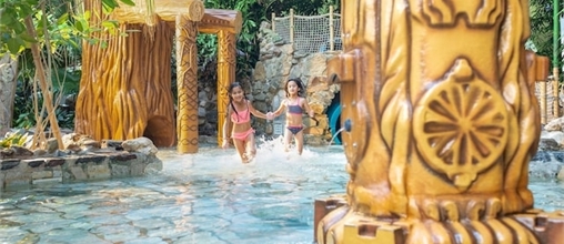 De kinderen kunnen heerlijk spelen in het veilige Kinder-doe-bad in jungle-thema. Met een boomstamglijbaan, palmboom fonteintjes en een heus jungle speeleiland hebben de allerkleinsten de tijd van hun leven in de Aqua Mundo.