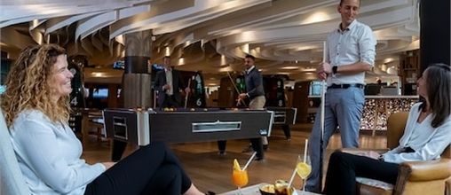 Neem een pauze tussen het bowlen, biljarten of gamen door! In de Bar Bowling geniet je van bier, cocktails, warme dranken, tapas, charcuterieplanken, wafels en ijs in een gezellige sfeer.