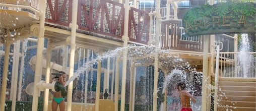 Zorg dat je de topattractie van Aqua Mundo niet mist: het Water Playhouse. Een platform met waterspellen zoals, glijbanen, waterpistolen en een enorme emmer water die 900 liter water uitstort over de zwemmers.
