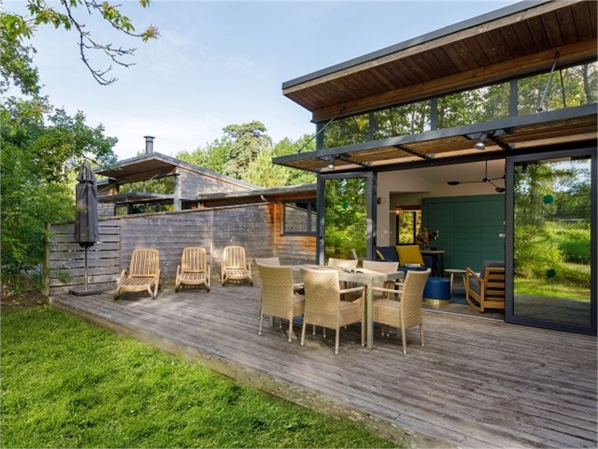 Gezelligheid en luxe gaan hand in hand in deze VIP cottage. Door de mix van houten materialen voelt je vakantiehuis huiselijk aan en gaat het op in de omringende natuur. Tegelijk geniet je van veel comfort, zoals de luxebadkamer met regendouche en de sauna. Dit voelt echt als vakantie!