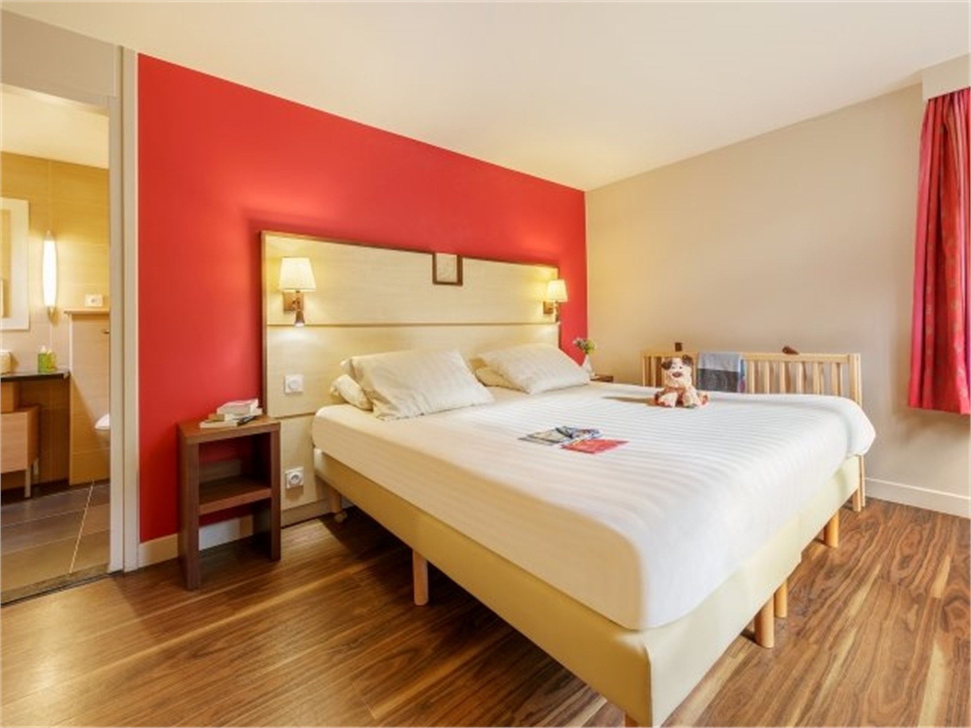 2 Slaapkamers : 1 met tweepersoonsbed (180 x 210), flatscreen TV, 1 met 2 éénpersoonsbedden (80 x 200), kaptafel