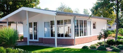 Het type E wordt ook wel de “Veranda” genoemd. Een prachtige luifel is kenmerkend voor dit type woning. Via de openslaande terrasdeuren kunt u vanuit de woonkamer het brede, overdekte terras betreden. De royale hoekerker zorgt ervoor dat er altijd een optimale lichtinval is in de woning. De ruime living met open keuken maakt deze vakantiewoning tot een aangename plek om samen te verblijven. De Veranda is geschikt voor 4 personen. Er zijn twee slaapkamers, elk voorzien van 2 éénpersoonsbedden. De Veranda beschikt over een grote, betegelde badkamer met douchecabine, wastafel en toilet.