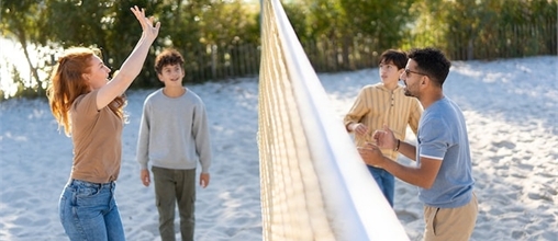 Voel het zand tussen uw tenen, stel het ultieme team samen en leef u helemaal uit tijdens een potje beachvolleybal!