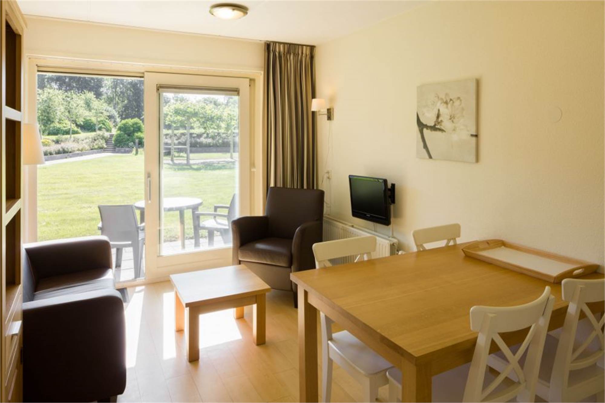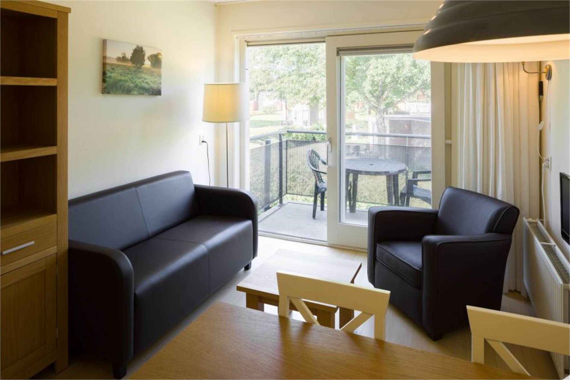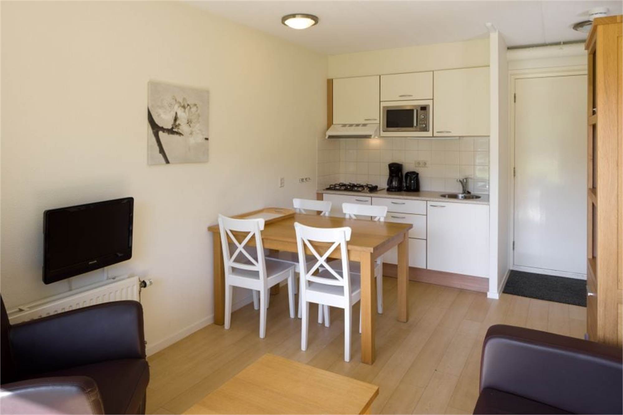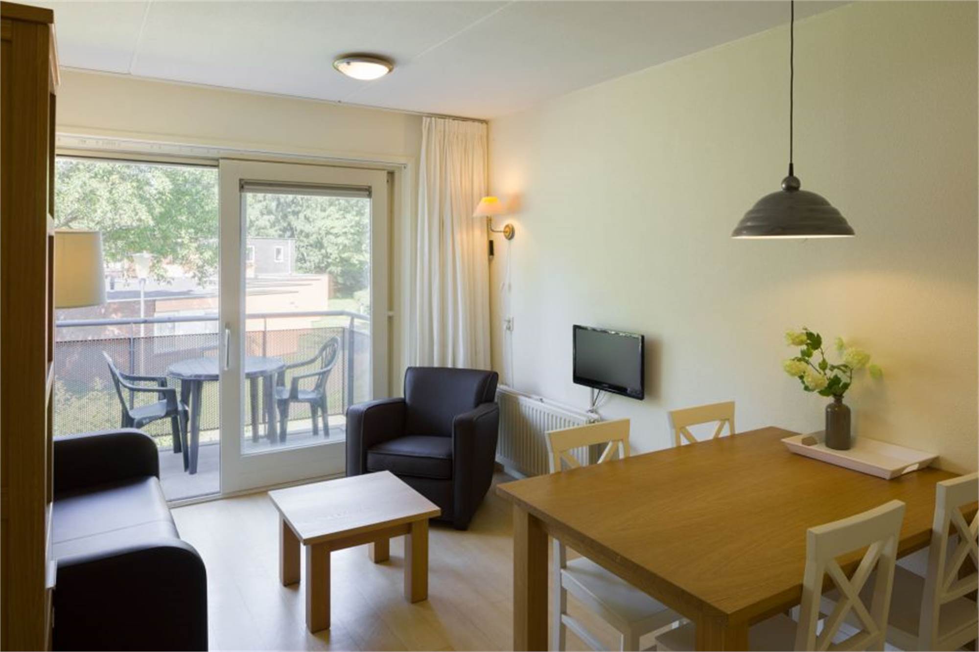 Dit gelijkvloers appartement is geschikt voor 2 personen. Het appartement beschikt over een woonkamer met zithoek, eethoek en een televisie. In de open keuken is onder andere een combimagnetron, waterkoker en een koffiezetapparaat. Er is 1 slaapkamer met 2 eenpersoonsbedden. De badkamer beschikt over een douche en een toilet. Uiteraard is in het appartement een internetaansluiting. Het appartement heeft verder een balkon of terras met tuinmeubilair.
