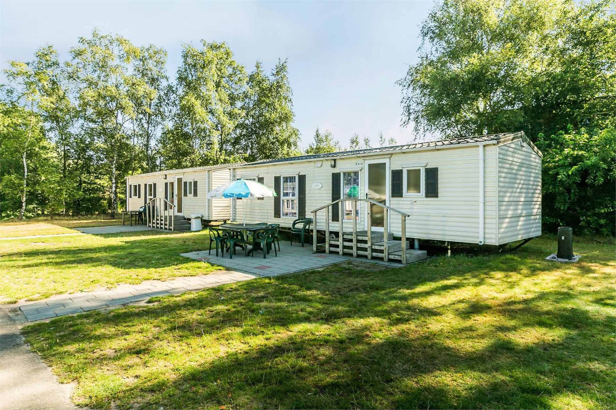 Een mobilehome is ideaal om in te verblijven wanneer je wat meer luxe wilt hebben tijdens je vakantie. Het heerlijke vakantiegevoel waarbij je niets hoeft op te zetten of mee moet sjouwen. Je mobilehome is altijd voorzien van een gemeubileerde zithoek met TV en kachel, keuken met koelkast, magnetron, koffiezetapparaat, 4 pits kooktoestel en keukeninventaris, badkamer met toilet, wastafel en douche en een complete tuinset inclusief ‘Oostappen Groep’ parasol.