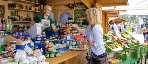 Op de Allgäuer boerenmarkt vindt je drie keer per week (dinsdag-, donderdag- en zaterdagochtend) een ruime keuze aan regionale producten: van heerlijke jam en honing tot smakelijke wijn en hoogwaardige ambachtelijke producten. En dat alles in sfeervolle Allgäu-houten hutten.