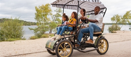 De Kickbike is een sportstep die je snel van de cottage naar de Aqua Mundo brengt maar ook zorgt voor gezonde beweging: een totale workout!