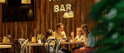 Trek in een snack of een sappige hamburger? Ga naar de Family Bar voor verse hamburgers, knapperige frietjes en fingerfood in een gezellige omgeving die perfect is voor iedereen.