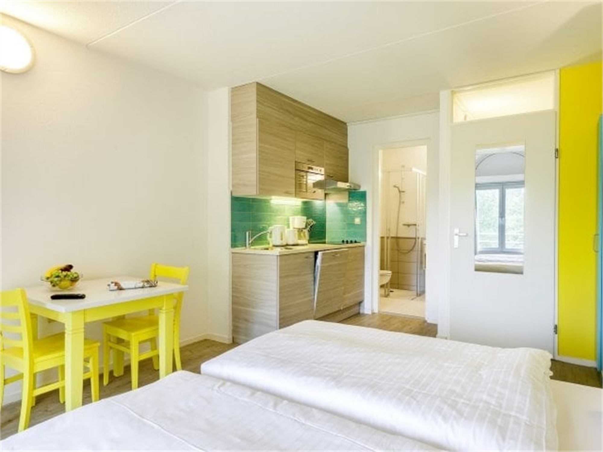 Een compacte keuken om een lekker ontbijtje klaar te maken, een gezellig zitgedeelte om tv te kijken of een boek te lezen, en een slaapkamer waar je na een goedgevulde dag als een roos in slaap valt. In een appartement ben je echt even samen!