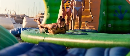 Stel je voor: een water speelparadijs met maar liefst 40 onderdelen. Kom springen, glijden en klauteren op lucht-speelattracties. Waterpret gegarandeerd en lekker in de open lucht! En veilig natuurlijk, want er is altijd toezicht en iedereen krijgt een zwemvest.