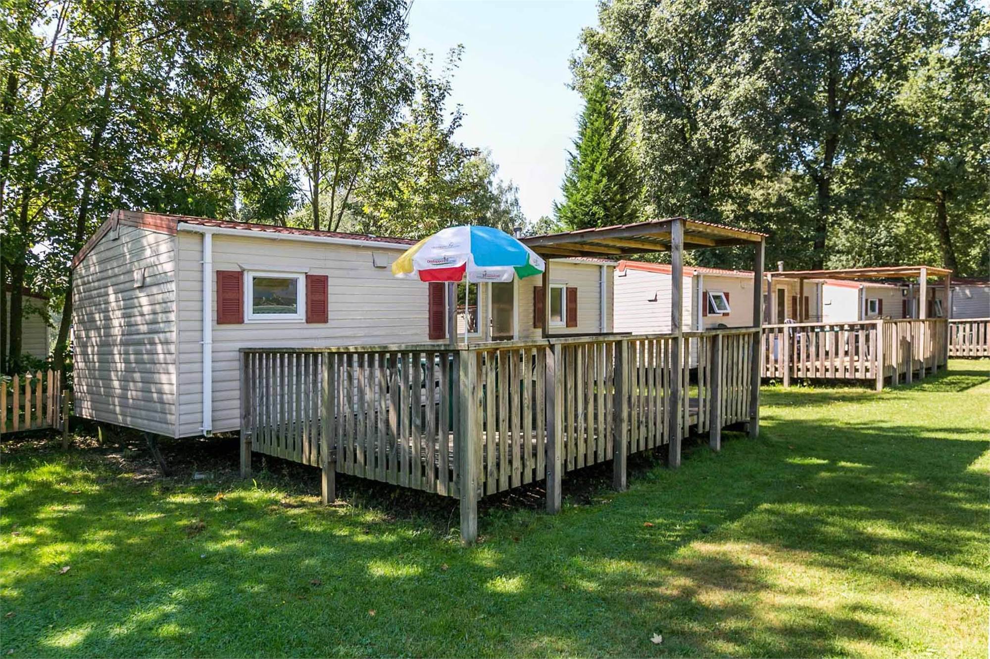 Een mobilehome is ideaal om in te verblijven wanneer je wat meer luxe wilt hebben tijdens je vakantie. Het heerlijke vakantiegevoel waarbij je niets hoeft op te zetten of mee moet sjouwen. Je mobilehome is altijd voorzien van een gemeubileerde zithoek met TV en kachel, keuken met koelkast, magnetron, koffiezetapparaat, 4 pits kooktoestel en keukeninventaris, badkamer met toilet, wastafel en douche en een complete tuinset inclusief ‘Oostappen Groep’ parasol.