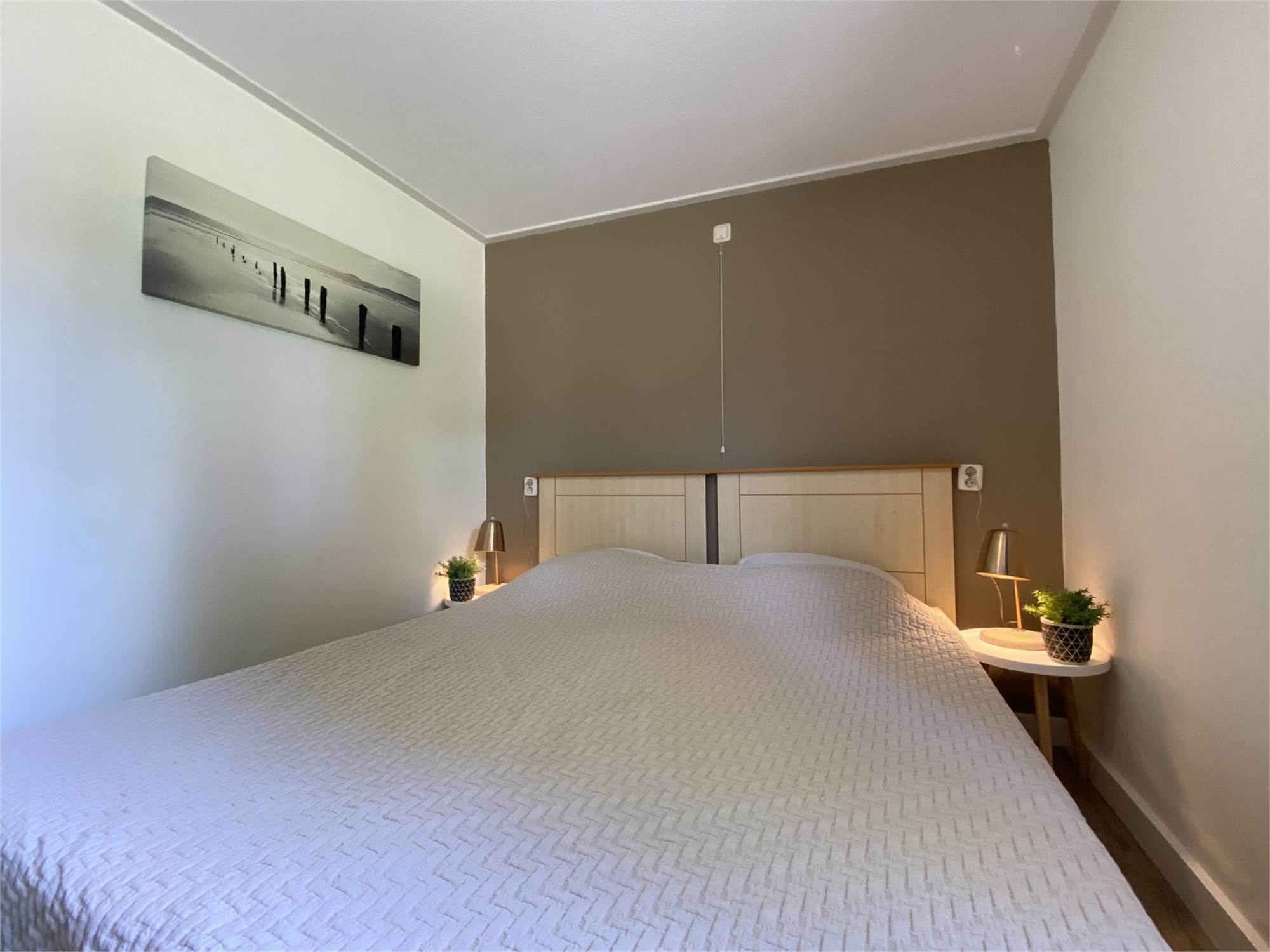 - Slaapkamer met twee 1-persoons boxspring bedden