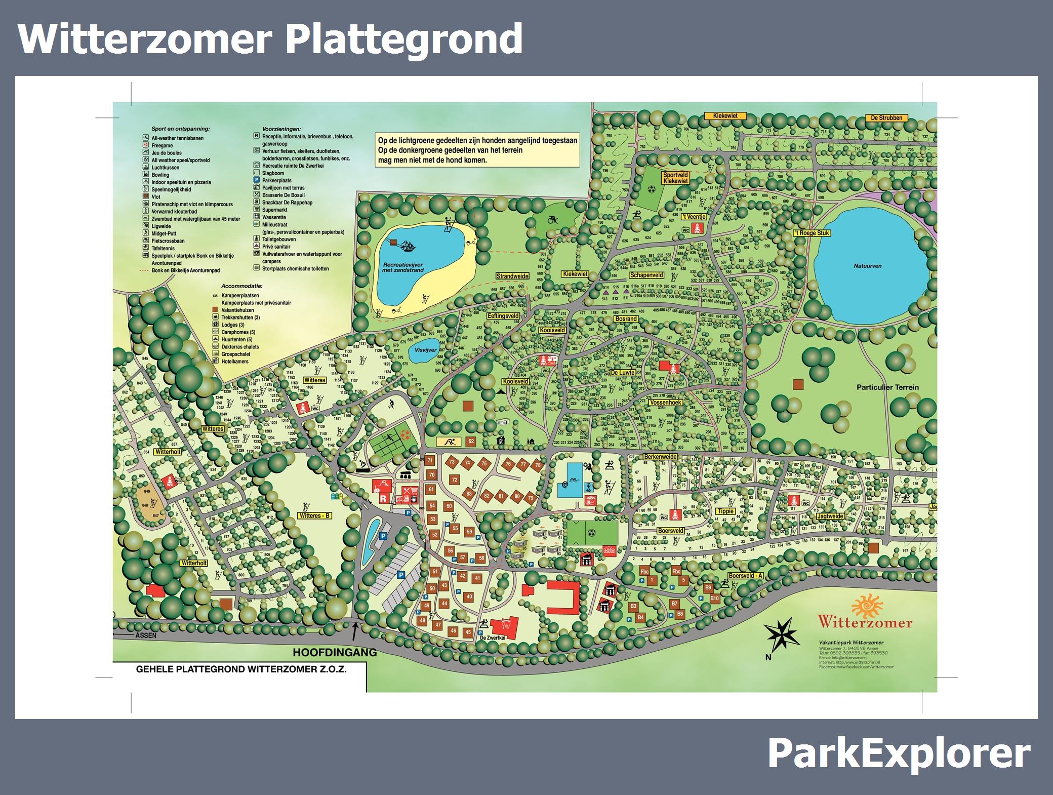 De park plattegrond van Witterzomer is niet alleen zeer handig tijdens het verblijf, maar vooral ook tijdens het boeken. De plattegrond geeft een goed beeld van de aanwezige faciliteiten en de ligging ervan op het park. TIP: Boek met voorkeursligging en kies een huisje in de buurt van de belangrijkste faciliteiten.